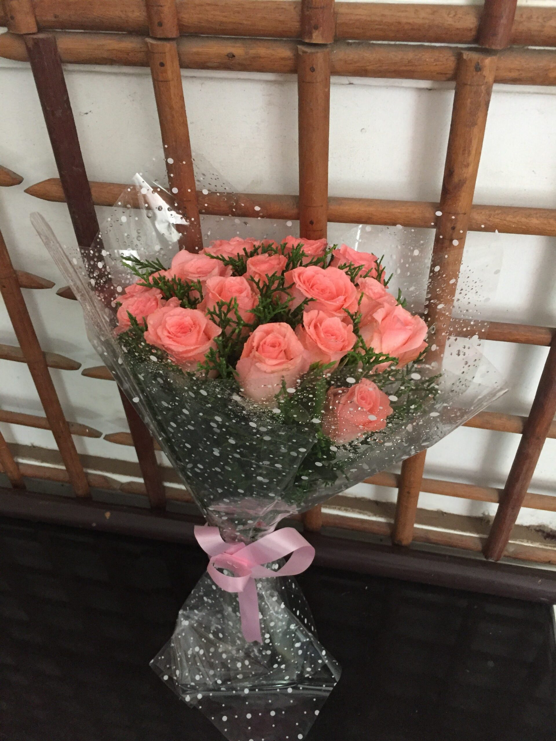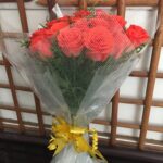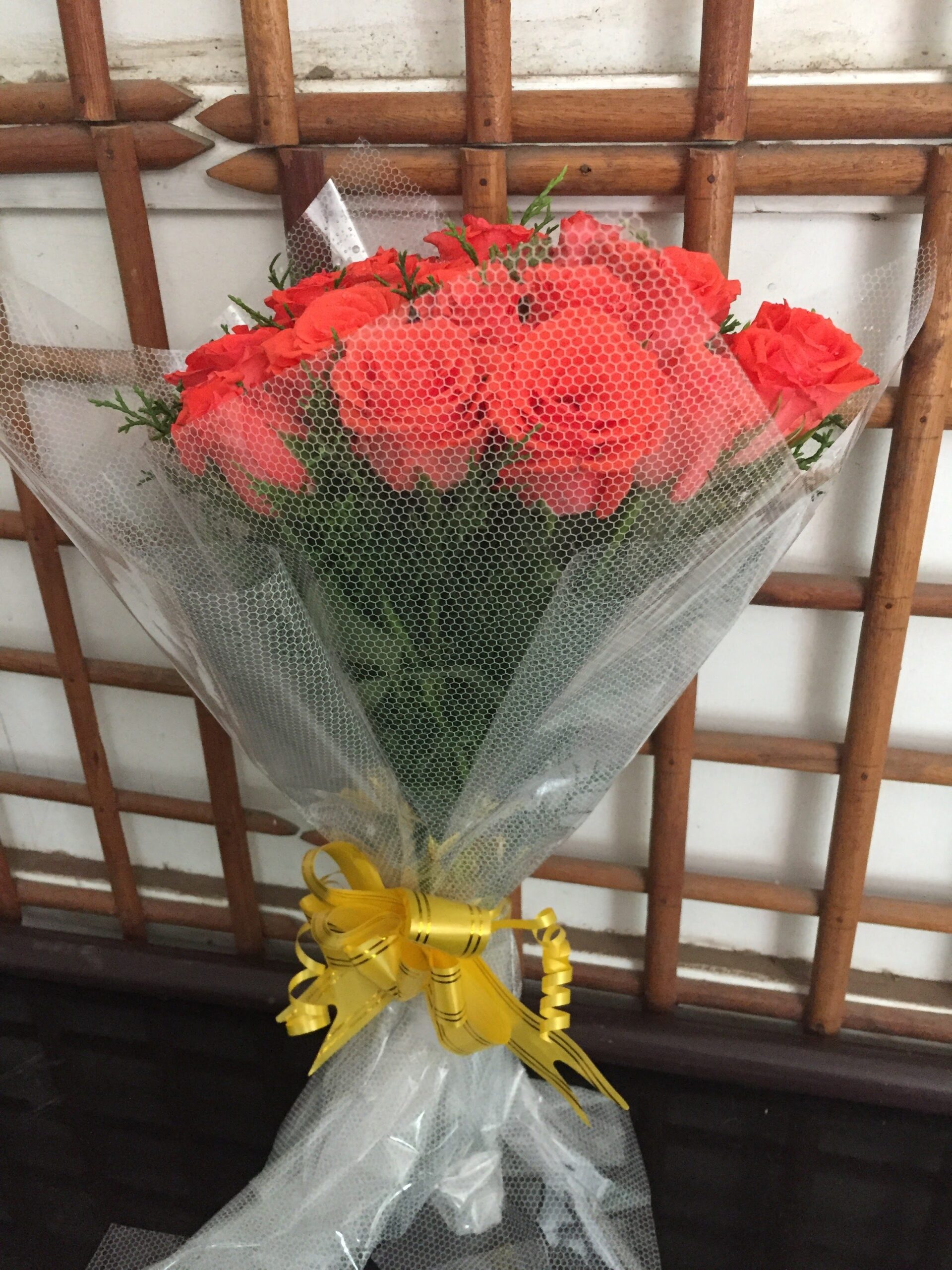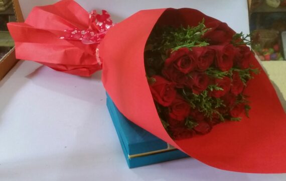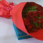 12 Red roses Red paper packed with 200gm Ferrero Rocher chocolates