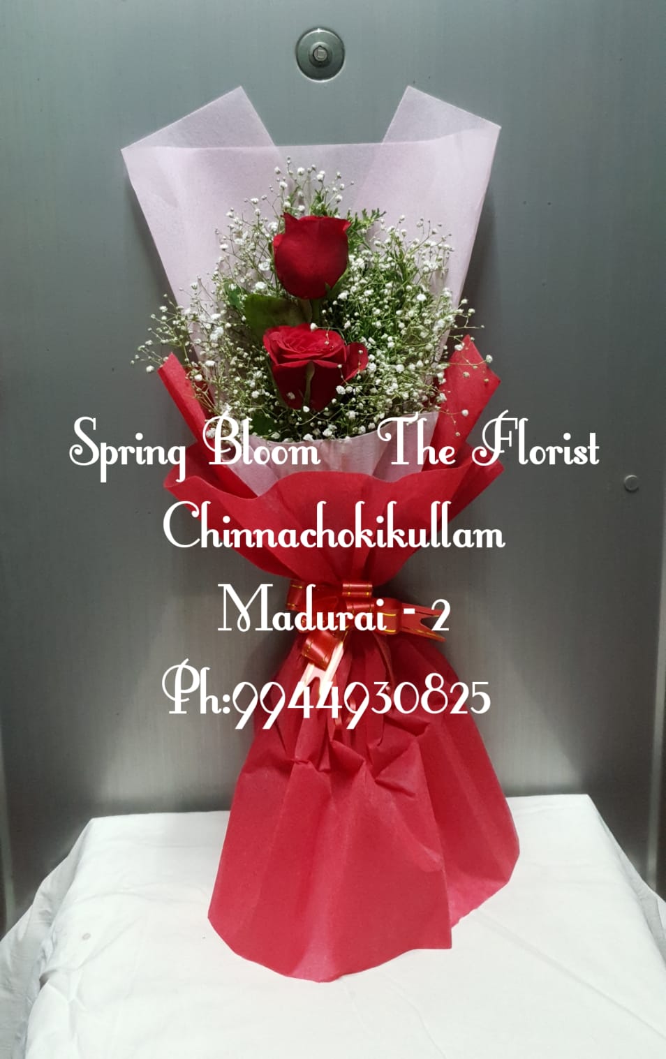 6 Red roses Red paper packed with 200gm Ferrero Rocher chocolates