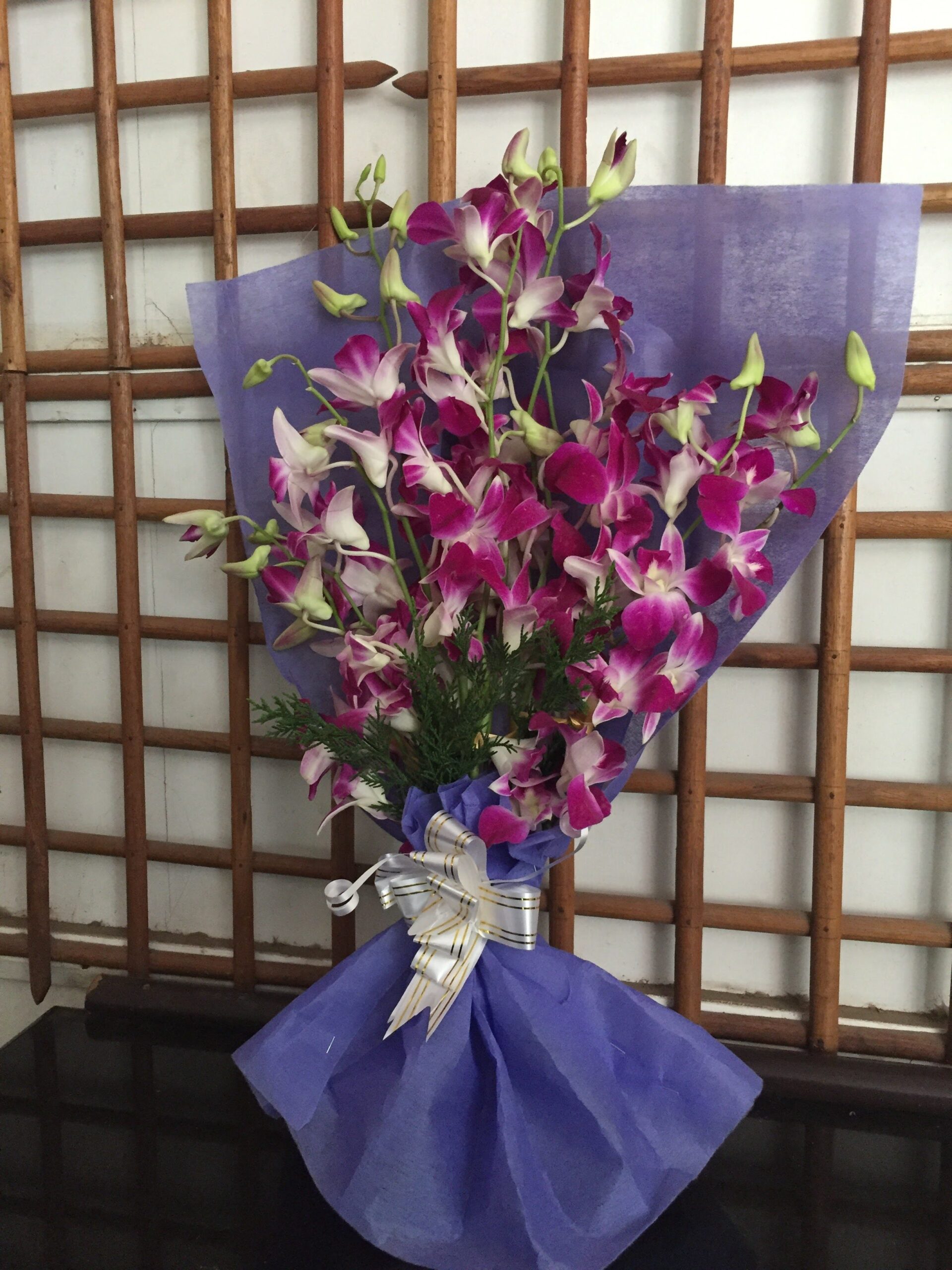 A glass vase arrangement of 5 stems of Oriental lillies. Kindly place the order 4 days before the delivery day for the flowers to be in the right stage of blooming