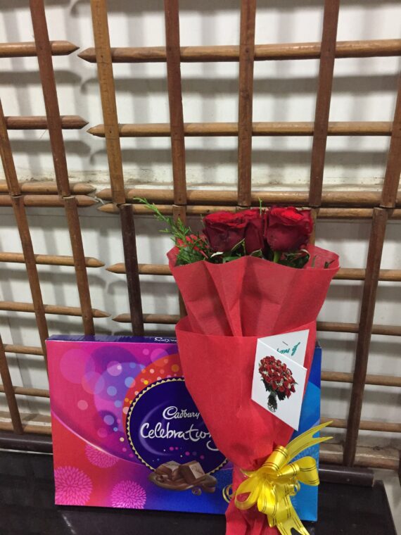 12 Red roses Red paper packed with 200gm Ferrero Rocher chocolates