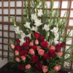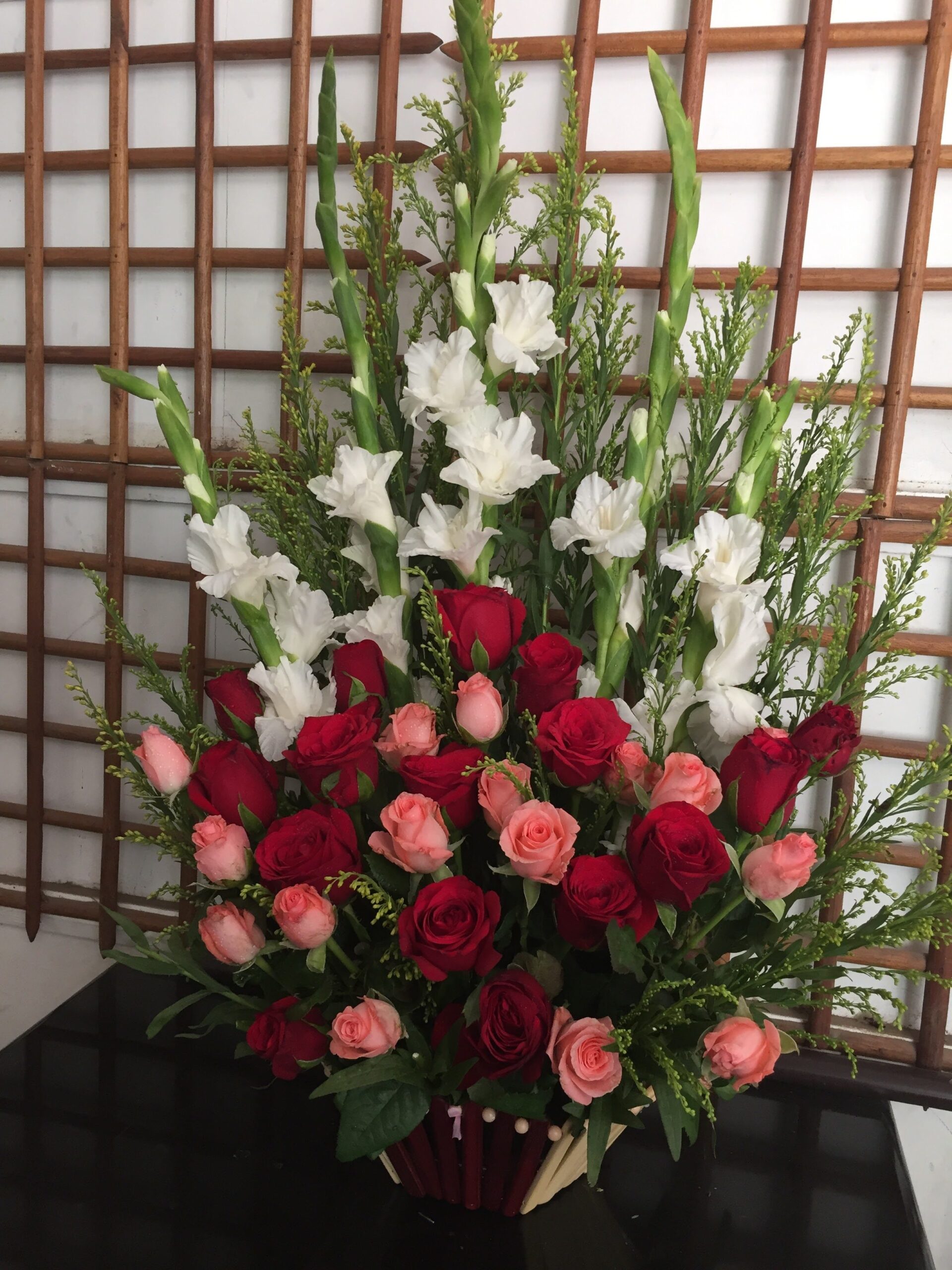 5 Stems Glads and 25 roses ( Red and pink) in a basket. If requested flowers are not available, the available flowers will be used.